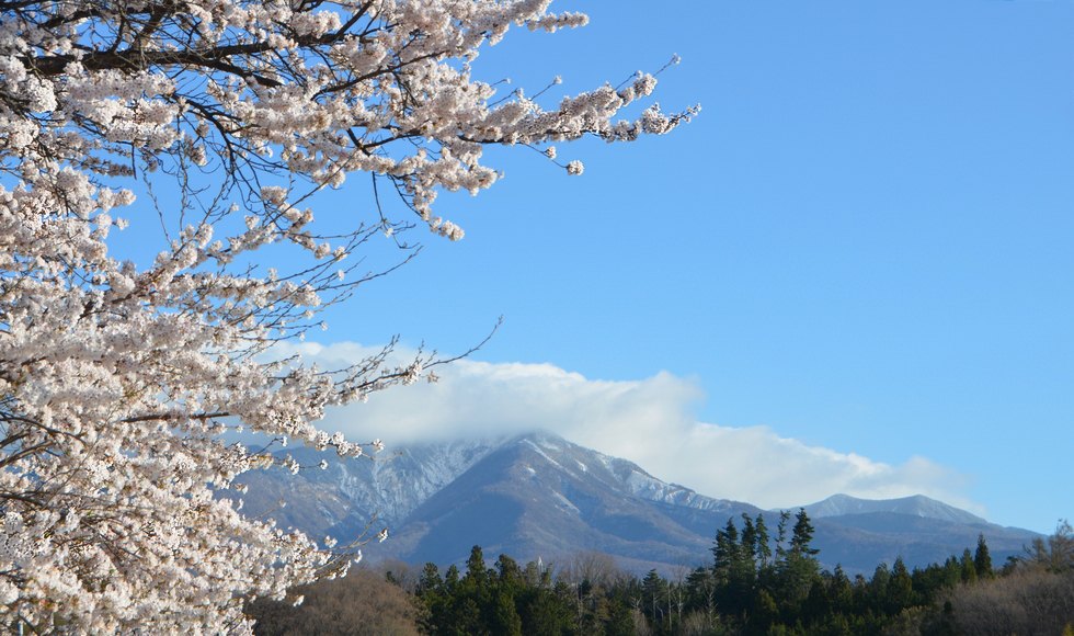 八ヶ岳は雲に覆われてはいるものの、青空と満開の桜は最高です。